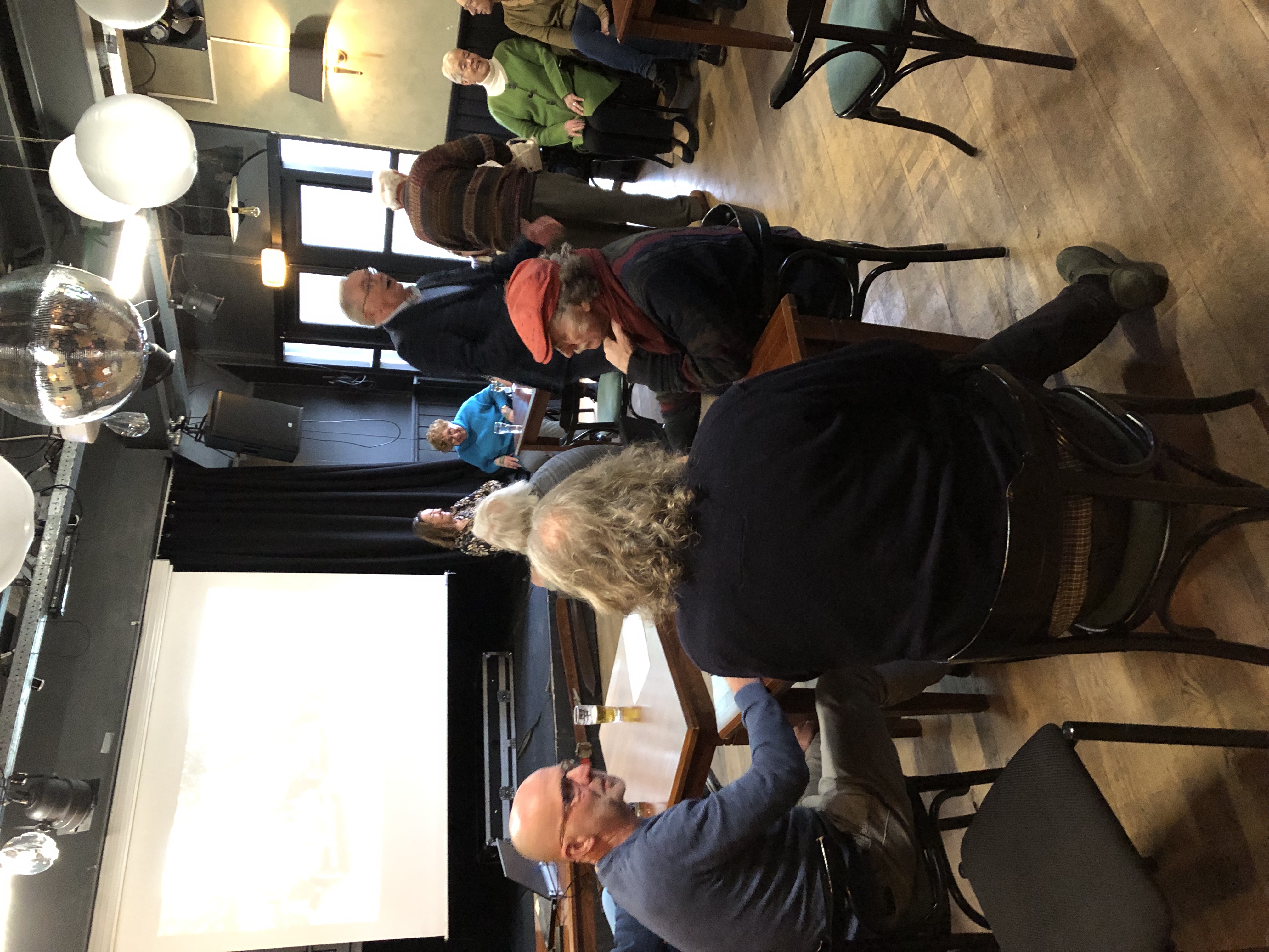 Daarna was er ook nogmaals tijd voor onderlinge contactgesprekken. Patrick van “Het Lokaal” maakte zich verdienstelijk door het regelen van de verwarming en de bediening van de bar. Sonja, Helma en Christine verzorgden de catering. De huzarensalade van Helma ging er in als koek en de worst/kaas combinatie van Sonja vond gretig aftrek.