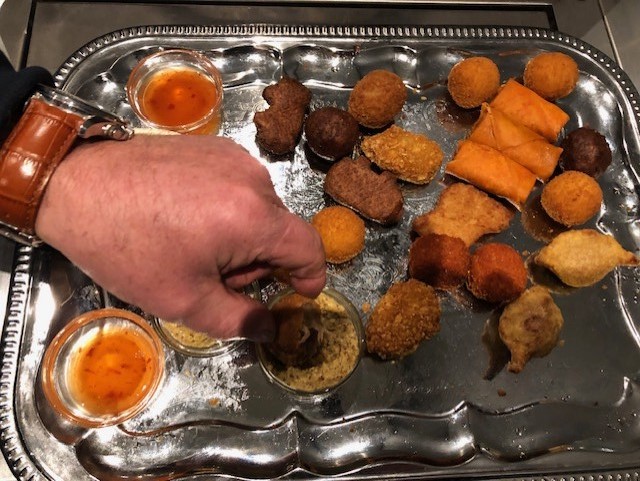 Han bediende buiten Het Lokaal de “vetput” oftewel de frituur en bakte zijn bittergarnituur lichtbruin. Dankzij de sauzen liep de consumptie gesmeerd.